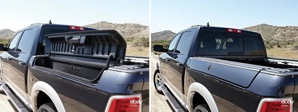 Hidden body storage compartments are highly desirable features of pick-up trucks, and the Dodge RAMBOX is one innovative solution. The photos below show the box in both the open and closed condition.