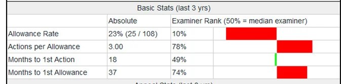 Unfortunately, Dan’s patent application was assigned to an examiner with a very low allowance rate (data from www.bigpatentdata.com):