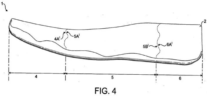 So why all the fuss over these three sections being coplanar with one another when no force is applied? Because the examiner “interpreted” the claims, in view of the alleged lack of clarity, in a way that there are “no limitations within the claims requiring that each of the regions is substantially planar with each of the other regions.” This interpretation was, no doubt, driven by the fact that the cited prior art only taught the toe and arch regions being coplanar and the arch and heel regions being coplanar, but not all three being coplanar when there is no force exerted on the sole by a user.