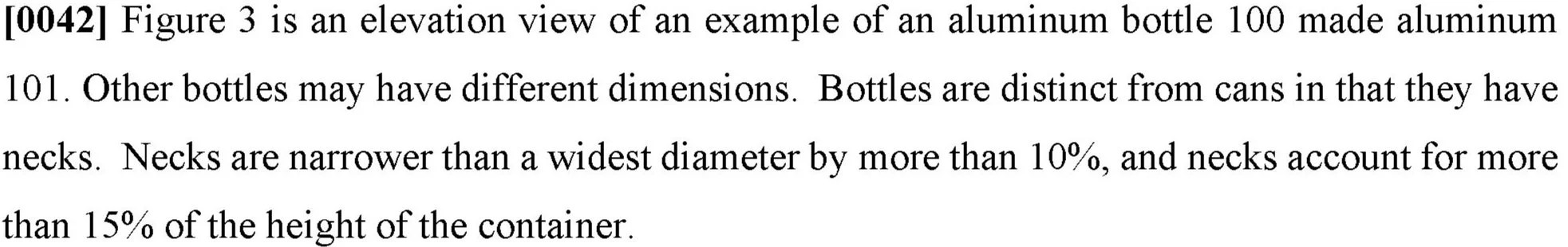 Here, Anheuser-Busch likely anticipated that the closest prior art would be from aluminum cans. As such, they set up the specification to support the distinction between cans and bottles. For example, the specification provided explicit definitions for the “neck”: